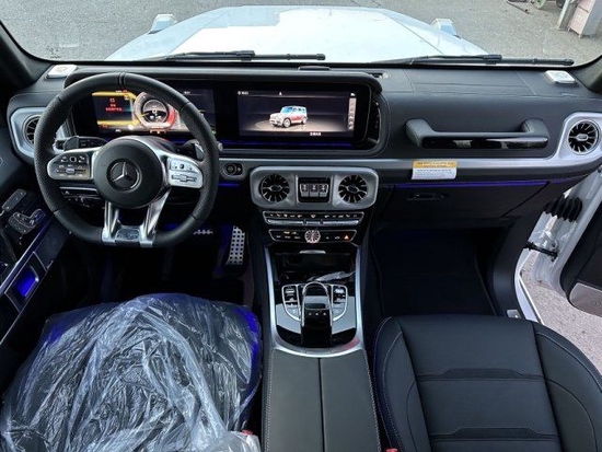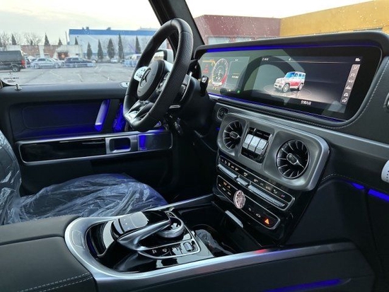 全新奔驰G63内饰采用的是贯穿式的双联大屏,这个是奔驰很经典的一个风格,在显示屏边缘,这款车还有皮革材料的点缀,采用缝线的处理让这款车显得更豪华。贵宾购车电话:17627885113 祝经理 (微信同电话)在显示屏的下方就是这款车的中控台了,中控台采用亮色的装饰,结合上钟表的一个镶嵌,我个人还是比较喜欢的。除此之外,内饰还有一个非常不错的地方,那就是方向盘上,这款车的方向盘有碳纤维的装点,这一下子就把运动的气息展现得跃然纸上