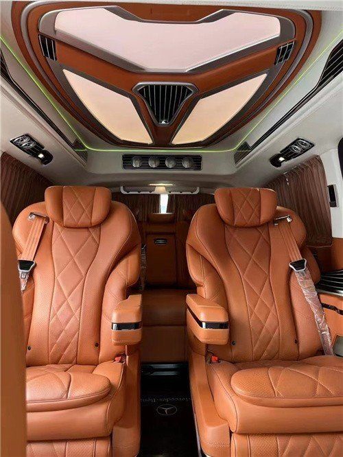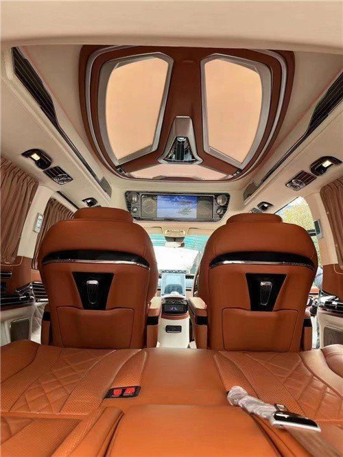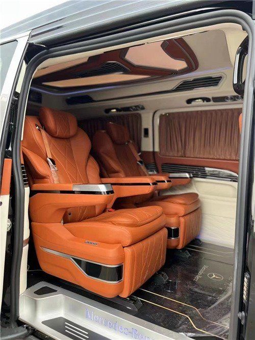 奔驰威霆无隔断改装,做工精致布局合理,内饰风格简约大气。全舱座椅采用进口nappa真皮制作,正副驾驶座椅后面都设置一个折叠式小桌板,可娱乐或办公,设计很人性化。多功能按摩座椅可前后电动滑动,腿托可电动打开,缓解腿部疲劳!亦可以旋转成面对面的交谈模式,更方便家人间的交流或者商务的洽谈。