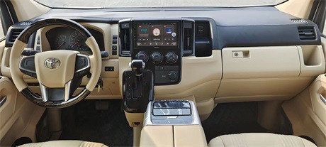 丰田海狮配备了可调节方向盘,其倾斜设计除可增加驾驶时的操控性及舒适度之外,亦可适应不同人士的身高或体形上下调节车厢设计宽敞,乘客区中间有走海狮车配备的DVD语言电子导航系统、车身颜色停车辅助感应器离子空气滤清器、全方位雷达以及冷藏保温箱也令人耳目一新。后排座椅可向上和左右两侧折叠更大的行李空间。HIACE车厢设计宽敞,中间走道将乘客座椅隔开。