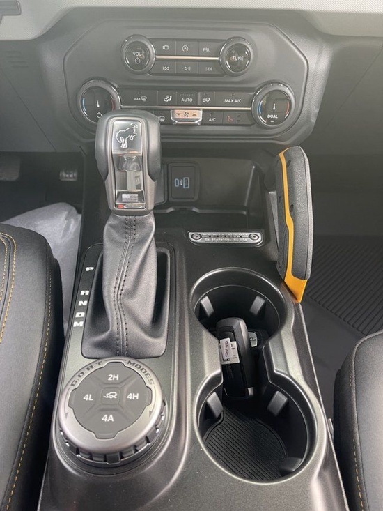 全新22款福特烈马Bronco车内采用硬朗的设计风格,中控台设计主次分明且有层次感,用料也厚实,多功能方向盘造型运动,中控屏幕采用内嵌式的设计增添了车内的时尚感,按键布局合理,档把设计精致,座椅宽大厚实,空间宽敞,实用性强。