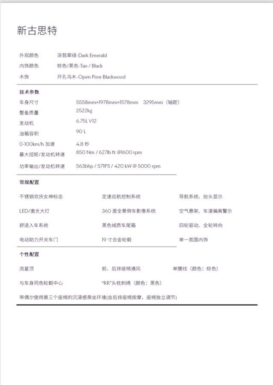 劳斯莱斯古思特的后排采用了传统的马车式后铰链车门,也就是我们常说的“对开门”设计,这样设计够讲究以外铰链安装在C柱可以让后门的开启角度达到83度,因此,能够保证后排乘客能够以最优雅最挺拔的姿态上车。22款劳斯莱斯古思特新增加流星星光顶,航空座椅,让您重新的体验,再塑臻美经典。
