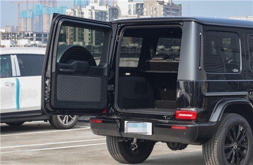 其实无论是前排还是后排,奔驰G级的车内都缺少了一个拉手来帮助乘客上车,尤其是对于那些身高不高的人来说,脚踩在踏板上手要借力拉一下,但是现在就比较尴尬了。一位身高1米83的体验者坐进前排把座椅调至最低后,头部空间剩余一拳三指,保持前排座椅不变体验者来到后排,头部空间在一拳四指左右,不过腿部空间仅剩四指。中间位置的座椅相较于老款车型来说规格有所降低,不再是跟两边一样的独立座椅,由于加入了中央扶手因此中间座椅的靠背更硬。