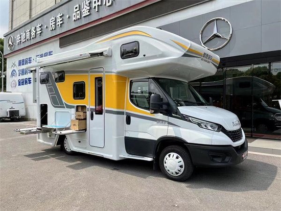 车辆尺寸:5990×2490×3180(mm)发动机:3.0T 柴油涡轮增压发动机底盘:进口依维柯 New Daily 底盘动力参数:峰值扭矩 430N·m,最大功率 125kW变速箱:8AT 变速箱床位布局:额头床+会客区沙发拼床+拓展舱横床核载人数:6人。水箱容积:外置 160 L净水箱、内置 170 L净水箱、低温自动排水功能、进口驻车燃油加热器(水暖)电力配置:全车 48V 电路系统,搭配 48V 420Ah 锂电池(21.5度电)、 48V 3500W 逆变器、1500W 的充电功率、1350W 光伏板。