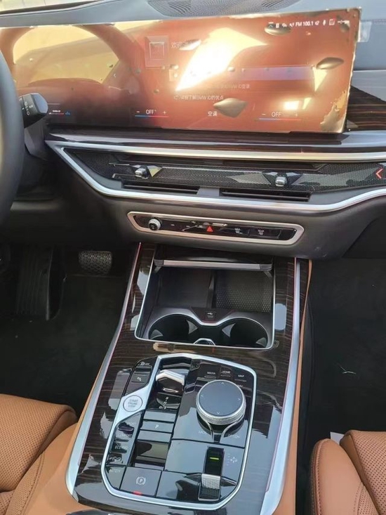 23款宝马X7多功能方向盘的按键操控区域周围加装了液晶设计,仪表盘和显示屏就更不用多说,仅仅是灯光效果,就令人为之一振。还有一个亮点就在于水晶档把,在氛围灯的照射下更加科幻,完全不是同级别能够相比的。