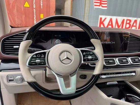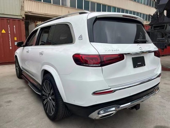 迈巴赫GLS (配置|询价)600车身侧面,新车采用双色车漆喷涂,配备23英寸多幅熏黑轮毂,D柱之上镶嵌迈巴赫专属LOGO,同时车窗周边的镀铬装饰也凸显了尊贵的身份,整体的车身设计简洁而干练。车尾也采用了大量的镀铬装饰,GLS 600和Maybach英文标识所使用的字体样式相比以往车型质感更强。