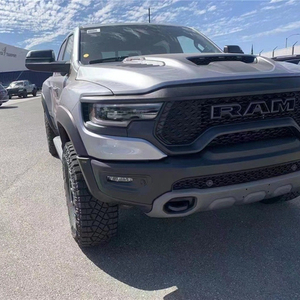 22款道奇公羊霸王龙TRX国六最新款新车传承了道奇Ram家族高大威猛的造型设计,同时细节部分融入了更多高性能元素,包括经过黑化处理的前格栅,引擎盖两侧的黑色进气口,霸王龙 以及为了容纳巨大的机械增压器而设计的通风口等等。此外,新车还配备了视觉冲击力更强的黑色轮眉和外露式的拖车钩,看上去十分霸气。