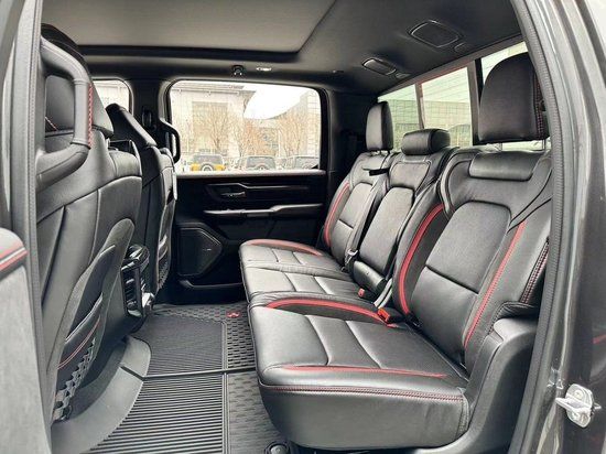 2023款道奇公羊霸王龙trx内饰做工则完全摆脱了美式的粗糙感,边缘接缝都处理的很精细,真皮座椅各自独立,配有加热按摩等舒适功能,每个座椅独立配一个操控手柄,各项功能由乘坐者自己控制。车型全部座椅均采用真皮包裹,前排还配备了十分实用的运动座椅。