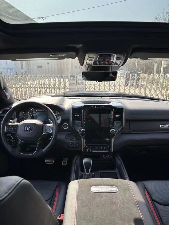 22款道奇公羊霸王龙做工则完全摆脱了美式的粗糙感,边缘、接缝都处理的很精细,真皮座椅各自独立,配有加热、按摩等舒适功能,每个座椅独立配一个操控手柄,各项功能由乘坐者自己控制。道奇公羊皮卡车型全部座椅均采用真皮包裹,前排还配备了十分实用的运动座椅。