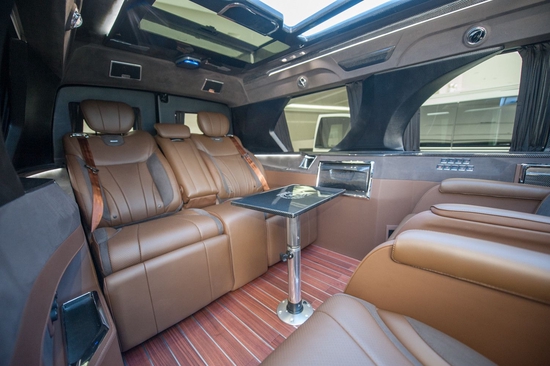 GMC商务之星,各种公务设施一应俱全,车载电话,可接驳笔记本电脑、传真、打印机等办公设备,配上座椅桌板,使得车内更象一个办公室。中间两个座椅可以进行180度的旋转,完全可以在车内召开一个四人的小型会议,同时又不耽误日常的办公。流动起来,随时掌握市场动态、指挥公司日常事务,这是一个真正现代大咖的所需要的。