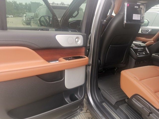 22款林肯领航员的内饰非常奢华,多功能方向盘,中控台的造型与宽大的车身相呼应,新车全部真皮包裹座椅,内饰采用桃木搭配设计,高贵典雅,加高加大的车身除了增加内部空间外,还给人营造一种尊贵典雅的感觉。最新林肯领航员新车采用了2+2+3的座椅布局,第二排采用了两个独立座椅,座椅内侧均配有扶手,舒适度超强。