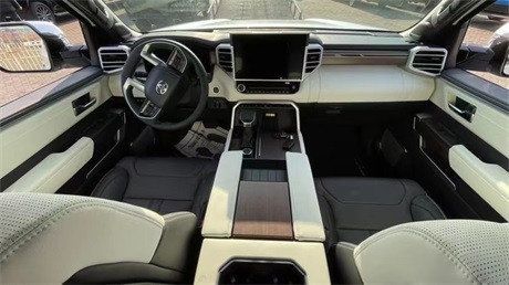 23款丰田红杉车内采用的是四辐式多功能方向盘,并保留了很多物理按键,足以满足驾驶时想要的操控感,车内的科技氛围是通过12.3英寸的全液晶仪表盘和14英寸的中控屏来实现的,中控屏两侧的空调出风口,虽然没有采用时下流行的贯通式设计,但在中控台上对称排列也别有一番风味。