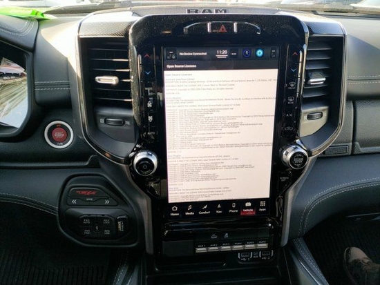 22款道奇公羊霸王龙TRX在内饰部分进一步强化了其高性能版本的形象,中控台和座椅随处可见的TRX标识便是最好的例证。同时,作为道奇家族的旗舰车型,新车还配备了12英寸竖置中控屏幕,除了支持蓝牙、导航和车载Wi-Fi等常见功能,还支持Apple CarPlay和Android Auto手机映射。