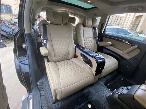娱乐:娱乐系统改装,指氛围灯光、中控、音响等。 办公:办公改装一般是指,后排商务小桌板、杯架、无线网络等。 汽车内饰的改装上至房车MPV商务车,下至家用商务SUV、轿车,都是能做出不意想不到的效果。 真皮座椅:在繁类众多的内饰改装方面,在内饰改装触及最多最广最实惠的就属真皮改装。因为真皮改装的效果是改装里面最能直接感受到。 第一、体感柔软,舒适耐用;第二、表面光滑,容易清洁;第三、视觉光鲜、饱满精致、豪华美观;因而真皮内饰被认定为豪华的象征,深受广大用户的青睐,是大多数车主的内饰首选。
