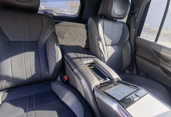 雷克萨斯LX600后排为两个独立的座椅,中间设有多媒体和空调控制区域,同时该车配有后排娱乐显示屏,副驾座椅可以向前移动,还可以将座椅靠背前倾,把乘坐的豪华性拉满。