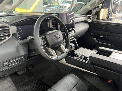 23款丰田红杉车内采用了大量软质材料包裹,部分区域还加入了缝线处理,显得档次感和质感十足。另外车内采用的是四辐式多功能方向盘,并保留了很多物理按键,足以满足驾驶时想要的操控感,车内的科技氛围是通过12.3英寸的全液晶仪表盘和14英寸的中控屏来实现的,中控屏两侧的空调出风口,虽然没有采用时下流行的贯通式设计,但在中控台上对称排列也别有一番风味。另外顶配Capstone车型的内饰将会采用更加豪华的黑白配色方案,并搭配胡桃木装饰面板。