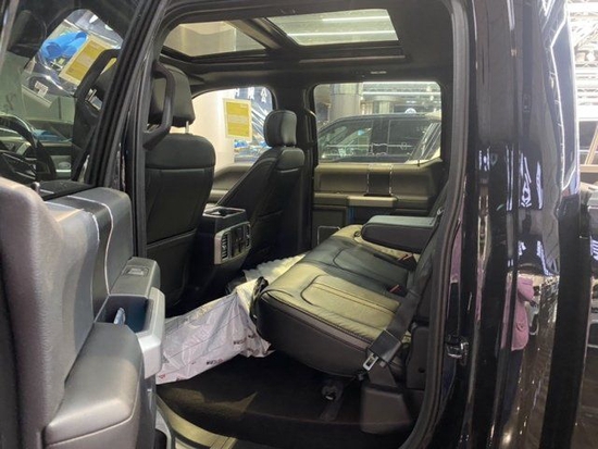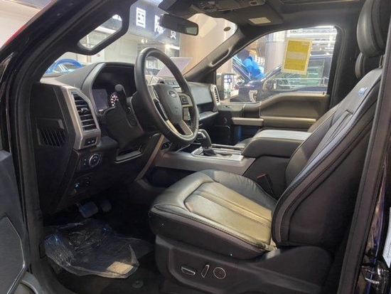 福特F150白金版车内配备标准独特的皮革和布艺装饰的座椅,驾驶员侧的电动十向调节。福特F150白金版这些座椅同时具备记忆功能。中央控制区搭配了触控式显示屏,其下方则是多媒体控制区及空调面板采用旋钮物理按键的组合。