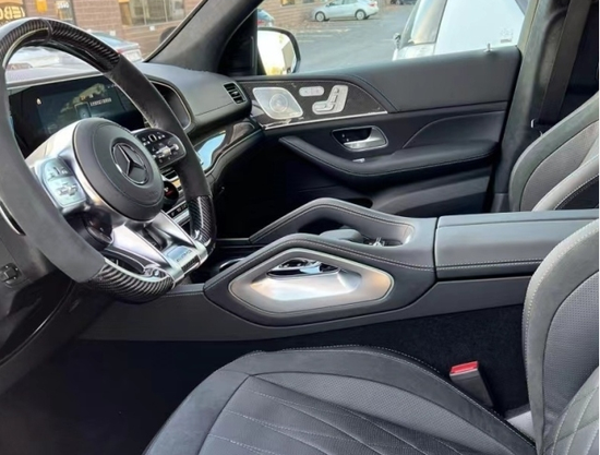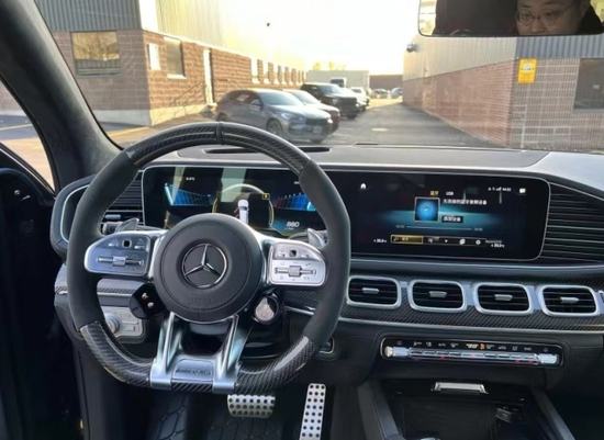全新一代22款奔驰GLS (配置|询价)63家族化的三幅式方向盘方向盘,方向盘的两侧采用了打孔装饰,看上去很有性能感并且很豪华。新车的内饰装饰了大量的氛围灯,前侧的扶手上也配备了氛围灯。