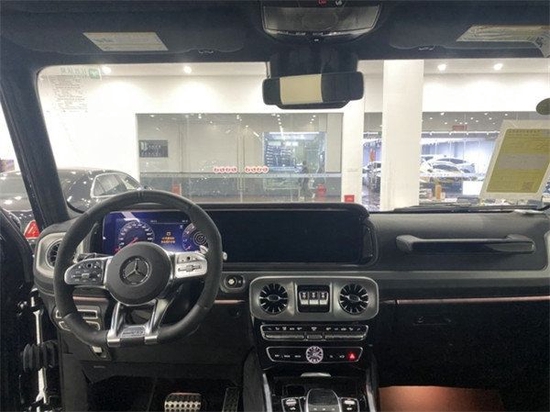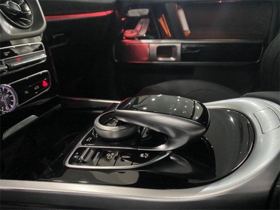 2022款奔驰G63的内饰即豪华又充满科技感,中控台多处均采用碳纤维材质覆盖,带彩色TFT显示屏的AMG仪表盘、AMG主菜单和单独的挡位显示器以及采用白色照明的AMG门槛,名贵的选材及精湛的打造都令人拍案叫绝。双12.3英寸贯穿式的显示屏营造出了浓郁的科技氛围。当然了,经典的“三把锁”按键自然不会缺席,并且设置在中控台最为显眼的位置。