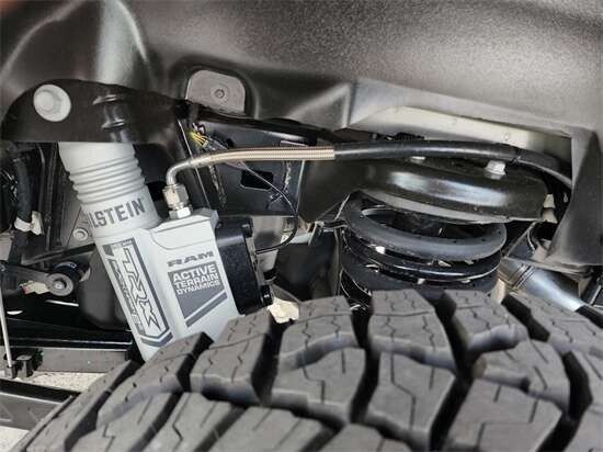 2022款道奇霸王龙为一款主打越野的高性能皮卡,底盘也进行了大幅升级,购车热线:15320196898 (同微信) 刘经理底盘大量采用高强度钢材以提升车架刚性,同时悬挂系统还配备了来自Bilstein的自适应减振器,可以减轻高速沙漠驾驶和越野时的振动,提升驾驶性能和耐用度。