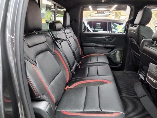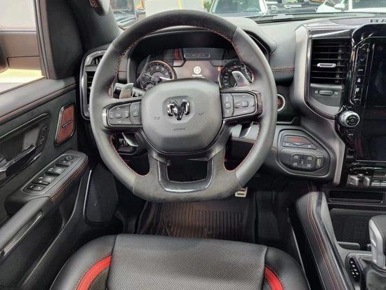全新道奇霸王龙TRX在内饰部分进一步强化了其高性能版本的形象,中控台和座椅随处可见的TRX标识便是最好的例证。同时,作为道奇家族的旗舰车型,新车还配备了12英寸竖置中控屏幕,除了支持蓝牙、导航和车载Wi-Fi等常见功能,还支持Apple CarPlay和Android Auto手机映射