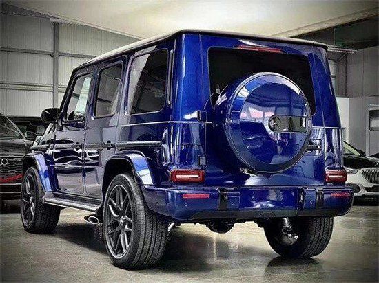 22款奔驰G63硬朗的方盒子造型,没有多余的弧度、没有任何曲线,眼光所及满是直锋利的线条,就连车顶上的导雨沟槽,也是沿着车顶周围一圈,分外焊接上去的金属槽,车门搭钮更是绝不虚心,硬挺挺地屹立在门缝之外,外凸的轮拱、造型如同 梯形的引擎盖。