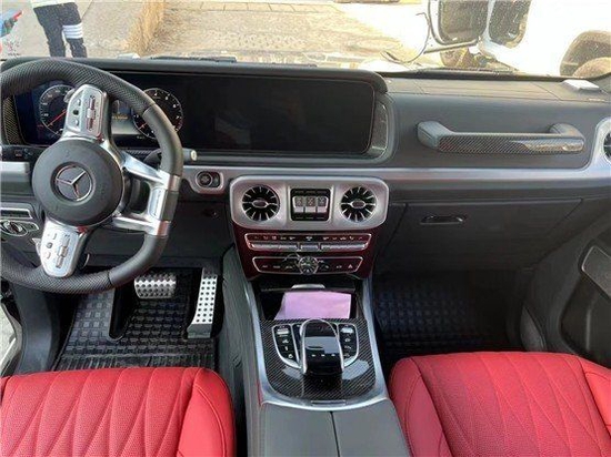 22款奔驰G63中控台多处均采用碳纤维材料覆盖,带彩色TFT显示屏的AMG仪表盘、AMG主菜单和单独的挡位显示器以及采用白色照明的AMG门槛。名贵的选材及精湛的内装令人拍案叫绝。