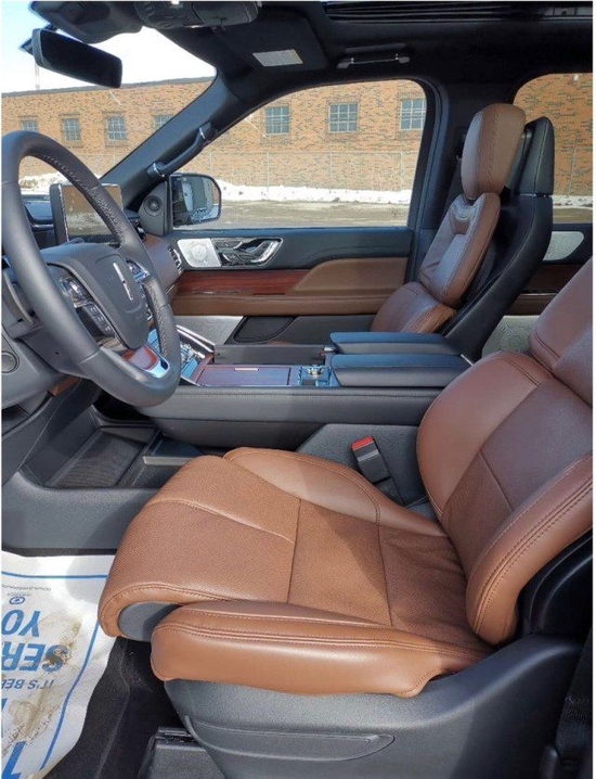 22款林肯领航员的内饰非常奢华,多功能方向盘,中控台的造型与宽大的车身相呼应,新车全部真皮包裹座椅,内饰采用桃木搭配设计,高贵典雅,加高加大的车身除了增加内部空间外,还给人营造一种尊贵典雅的感觉。贵宾购车电话:17627885113 祝经理 (微信同电话)最新林肯领航员新车采用了2+2+3的座椅布局,第二排采用了两个独立座椅,座椅内侧均配有扶手,舒适度超强。