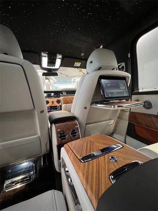 “车尾”劳斯莱斯古思特车尾相对整体复古的气息多了一点年轻化元素,尾灯设计十分小巧,外侧有镀铬装饰,造型和车尾整体很贴合,内部采用了全LED光源,至于车尾没有过多装饰,双边共4出布局的排气管采用了可变阀门系统同,根据工况调节阀门的开闭。490L的备箱容积,尽管不支持拓展,但内部高级的绒面质感包裹,已经超越了它的实用性。