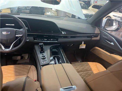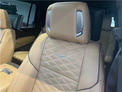 凯迪拉克凯雷德加长版内饰方面,座舱内搭载错落式的双大尺寸悬浮式荧屏设计,左侧额外设置有一块小尺寸屏幕用于显示车机信息,配合环抱式的中控台面,高耸的悬浮式换挡区,精致的电子档杆,展现出不错的质感,大面积皮革缝线工艺覆盖及各种复杂的特殊面板填充,格调上也符合一款豪华品牌旗舰SUV应有水平。