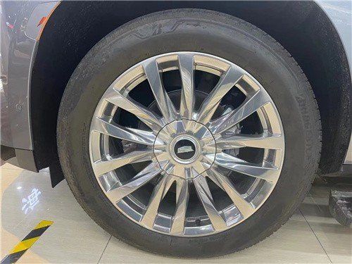 车身侧面,是美系全尺寸SUV标志性的高大线条,超长的车身,方正魁梧的型面,几乎没有一丝弯折,车门下方清晰而巨大的V字标志显示了车型的身份。悬浮式车顶设计,呼应大尺寸轮毂,带来不俗的豪车气场。