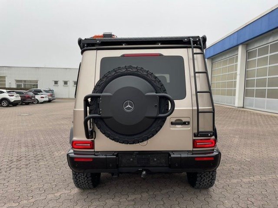 奔驰G级 (配置|询价)是一部纯粹的全地形越野车,粗犷外观。经典可靠的前、中、后三级可选差速锁系统、出色的全时四轮驱动系统以及异常坚固的梯形车架与刚性车桥,再次确保了这款豪华越野车在崎岖越野地形中所向披靡、一骑绝尘。