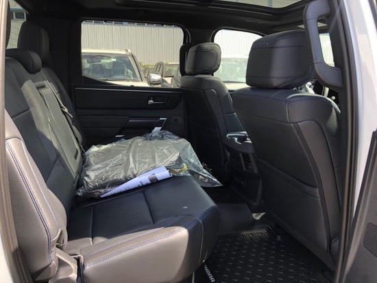 22款丰田坦途 Platinum铂金版顶配 配置:20轮、全景天窗、半苯胺真皮、胎压监测、雷达测距、前后电眼、360环影、无钥匙进入、一键启动、多功能真皮方向盘带加热、液晶仪表盘、抬头显示、无线充电、主副驾驶电动座椅、主驾座椅记忆、前后排座椅通风 加热、JBL音响、远光自动LED大灯、氛围灯、电动外加热后视镜、流媒体内后视镜、隐私玻璃、感应雨刷、并道辅助、车道偏离预警等