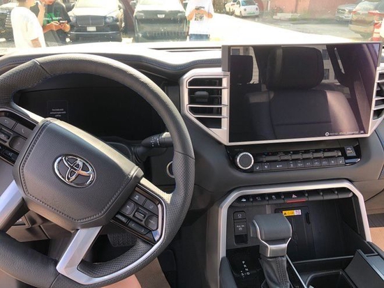 22款丰田坦途的内饰设计也采用了新设计风格,“硬”还是第一感受。无论是平直的线条还是灰白的用料配色,车内的风格都是非常偏向于越野,宽大的悬浮式液晶中控屏幕也是挺抢眼的,根据不同配置也将提供有8英寸以及14英寸的不同配置,就是这个感觉还是很像“大彩电”,只是放在这台车上会显得更协调一些,功能上也丰富了在线车联网以及CarPlay车机互联功能。