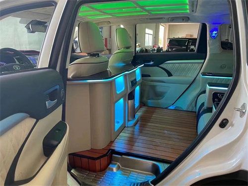商务小桌板:在汽车内饰改装上,小桌板也是发挥着它不一样闪亮点,折叠设计不占用空间,结构稳定,承重力好在忙碌的工作当中可以放上你的办公设备,提高工作效率。有了小桌板,休息之余泡上一杯香醇浓郁的咖啡,再也不用担心没有多余的位置摆放木质地板:现如今,商务、家庭用车改装木质地板也越来越多,简洁大气,瞬间提升内饰档次,最主要的还是木质地板的质感增强了乘车的舒适性和满足感。木质地板作为汽车内饰寿命较高,体验感强烈,所表现出来的气质和其他汽车内饰也是截然不同的,在视觉的冲击之下,也是一辆汽车最容易出彩的地方。