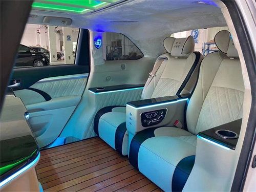 娱乐:娱乐系统改装,指氛围灯光、中控、音响等。 办公:办公改装一般是指,后排商务小桌板、杯架、无线网络等。 汽车内饰的改装上至房车MPV商务车,下至家用商务SUV、轿车,都是能做出不意想不到的效果。 真皮座椅:在繁类众多的内饰改装方面,在内饰改装触及最多最广最实惠的就属真皮改装。因为真皮改装的效果是改装里面最能直接感受到。 第一、体感柔软,舒适耐用;第二、表面光滑,容易清洁;第三、视觉光鲜、饱满精致、豪华美观;因而真皮内饰被认定为豪华的象征,深受广大用户的青睐,是大多数车主的内饰首选。