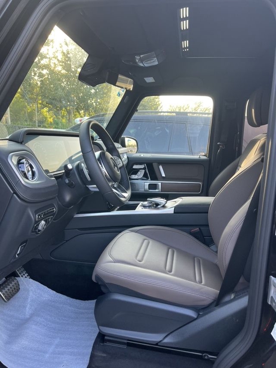 全新2022款奔驰G500经过全新改款内饰豪华气派,卓越的品质和精致的工艺在车内体现得淋漓尽致,对细节的精益求精是内饰设计中的重要原则。,2022款奔驰G500经过全新改款中控大屏和仪表部分也采用了科技感满满的双12.3寸巨幕,空调出风口也改为重新设计的炮筒式,豪华感和科技感大大提升。大大方便了驾驶者的超控,同时也提高了驾驶乐趣。