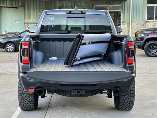 22款道奇公羊霸王龙trx结构方面。传动采用了前双叉臂配后五连杆的结构、采用高强度铝合金材质、底盘则为钢制。拥有开方式差速器和电子差速锁。避震器则为Bilstein Blackawk品牌、为自适应氮气也有电控可调功能。