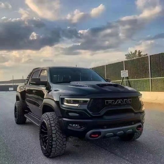 2022款道奇公羊霸王龙外观设计极具冲击感,前倾式车头,相较中规中矩的家族设计无疑多了几分对路面的侵袭感。车内氛围堪称豪华,绝对可以媲美高级轿车。眼神中没有透露出一丝的活泼神韵,唯一展现出来的只有凶狠。前杠是铁质前杠带拖钩,散发这金属气息,沉稳大气。