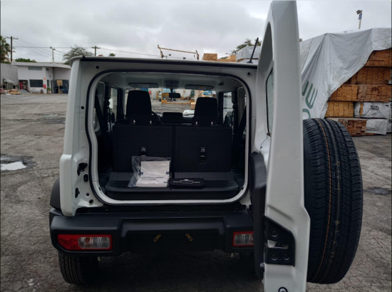 23款 墨版吉姆尼 自档 顶配 原产日本15寸铝轮,大屏,四座,分时四驱,黑色前中网,前雾灯,电动调节后视镜,多功能方向盘,电动玻璃升降,手动空调,中央杯架,两气囊,ABS/ESP/坡道停止控制/刹车辅助/防盗系统/高位刹车灯,LED大灯,大灯清洗,同色门把手,6气囊,自动空调,巡航定速,后备箱储物盒。