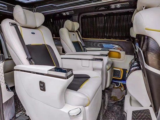 整车前脸包围一如既往,选用奔驰V250同款包围套件,使整车轮毂更加精致优雅减少了商务车敦实笨重的形象,中网采用镀铬式的直瀑设计,点缀的很恰当
