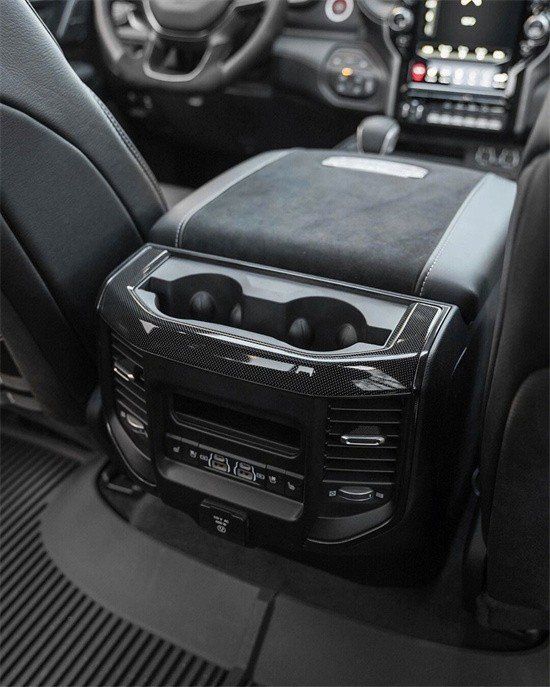 外观方面,新车传承了道奇Ram家族高大威猛的造型设计,同时细节部分融入了更多高性能元素,包括经过黑化处理的前格栅,引擎盖两侧的黑色进气口,以及为了容纳巨大的机械增压器而设计的通风口等等。此外,新车还配备了视觉冲击力更强的黑色轮眉和外露式的拖车钩,看上去十分霸气。