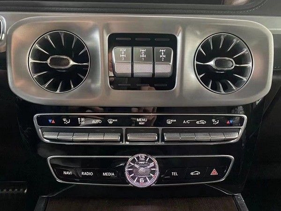 全新22款平行进口奔驰G (配置|询价)63内饰的功能确实有些过分的实用了,所以实而不华形容的很贴切。虽然没有配置最新的MBUX车内系统,但至少是标配了其他奔驰车型上的上一代MBUX,远比老款车型的COMAND系统好用的多,而且显示细腻度也提升了一个级别。可惜的是这套12.3寸的中控屏幕并没有触摸功能,你依旧使用扶手处的控制面板和功能按键来完成一系列操作。
