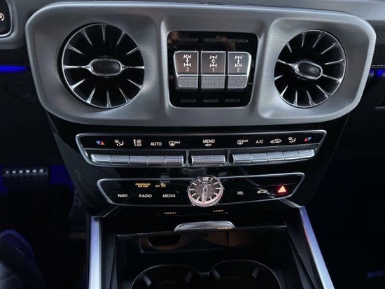 22款奔驰G63内饰方面,奔驰的设计绝对可以用惊艳来形容,无论是经典车型还是超豪华车型甚至是入门级的豪华车上,奔驰的内饰都会让你眼前一亮,当然了这也是奔驰的一个特色。所以这部全新的G63在内饰的表现上也是情理之中的,但是细节上还是有些小小的意外。这种感觉是打开车门的瞬间就能够感受到的。首先仪表和中控屏依旧是采用了同一款液晶屏显示,第一感觉就是科技感爆表。而其他方面例如方向盘,空调出风口,挡杆等等的设计充满设计感。