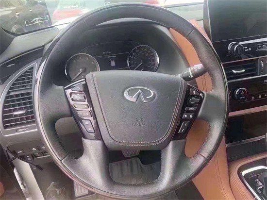 配置:ProActive顶配,5.6升V8发动机,400马力,413磅-英尺,单屏12.3英寸信息娱乐触摸屏,苹果CarPlay和安卓Auto,盲点警告(BSW),牵引能力-8500磅,全景,真皮方向盘加热,10向电动驾驶员座椅带记忆,8向电动乘客座椅,英菲尼迪智能钥匙,按钮点火照明,远程遥启,三区空调,前排座椅加热,Bose 音响,17扬声器,后排娱乐系统,7座,22轮配有全天候性能轮胎,自适应自动调平大灯前照明系统,智能后视镜,智能巡航控制(全速范围),车道偏离预防,镀铬格栅包围,带有黑色网眼和下部保险杠,深色镀铬后尾门饰件,深色镀铬侧通风口,第二排船长椅可翻转,第三排可轻松进入,第二排长条座椅60/40分割折叠,空气净化器,盲点侧撞干预,车道偏离。