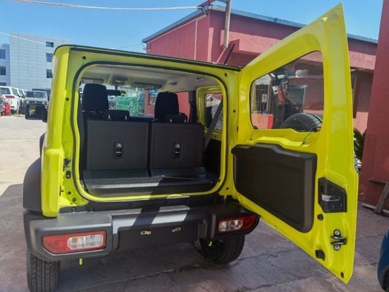 铃木吉姆尼依然采用三门式设计,车身整体短小紧凑。在侧面,一条与大地平行的腰线贯穿前后,看上去十分硬朗。至于车尾,新车的设计感相比现款车型更弱,不过尾灯组由尾门两侧全部移动到了后保险杠两侧。这仿佛是在向初代或第二代吉姆尼致敬。新车提供了黑色、白色、绿色、黄色、蓝色等十分丰富的颜色可选。鲜艳的颜色配合黑色车顶设计,让其粗犷而又不失时尚元素。