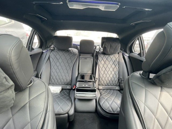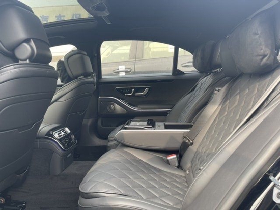 22款奔驰S580采用了三幅式的全新造型的方向盘,新车的中控台上采用了钢琴烤漆面板装饰,上面采用了多条横向的白色装饰条点缀。采用了悬浮式的纵置大屏,液晶仪表采用了悬浮式的风格。第二排座椅,新车的第二排采用了两个独立的豪华座椅,中间配备了独立的多媒体系统,新车的后排配备了无线充电、冰箱,后方的地台上采用了钢琴烤漆的面板。新车的后排座椅非常豪华,上面采用了菱形的纹路,门板上也采用了非常精致的设计。