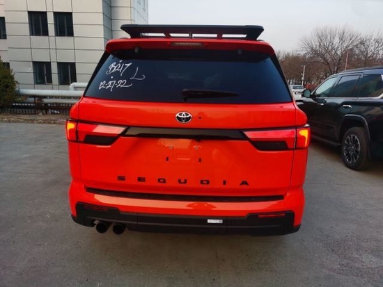 23款美版红杉TRD PRO 橙/黑 顶配 10速自动变速器。带黑色装饰的高级LED大灯、LED日间行车灯(DRL)、顺序转向灯和自动水平调节。18英寸TRD Pro哑光黑色锻造铝BBS带TRD中心盖的车轮。全景监视器(PVM)带相机。无线AndroidAuto&CarPlay兼容的。14英寸带14个JBL的ToyotaAudio多媒体触摸屏扬声器,包括低音炮和放大器。4W需求兼职四轮驱动。TRD Pro越野悬架,2.5英寸。福克斯内部旁路避震器和后部远程油箱减震器,以及TRD Pro前稳定杆选配:特殊漆面,TRD车顶行李架