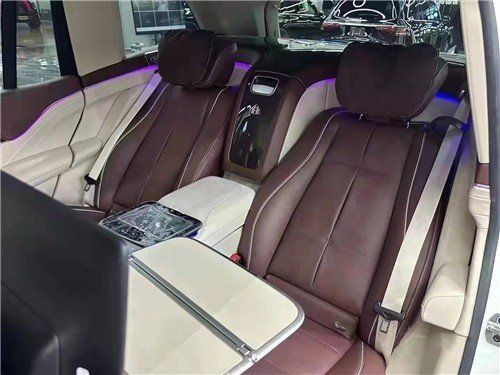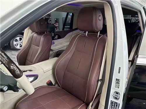 奔驰迈巴赫GLS600提供四座布局,四座车型第二排独立座椅相比普通版GLS更加靠后,并且带有巨大的腿拖,其后排座椅最大倾斜角度大43.5度,后排腿部空间最大达1.34米。中央由冰箱、控制台、储物空间和手机无线充电台等进行贯穿,呈现出类似于迈巴赫一样的头等舱设计。