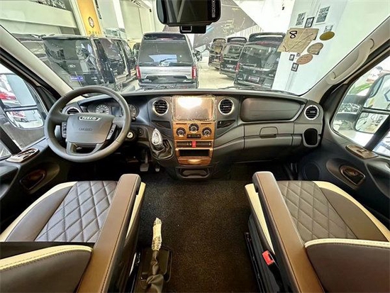 白色的车身搭配外部独特全新的拉花样式,六边形相互叠加的拉花粘贴在额头和车身的两侧,整体灵动又清新。该车使用了大额头的设计,整个额头的正面和侧面都使用了流线型的设计,可以减轻油耗,降低风阻系数,保证行车安全。车辆的墙板使用的是5cm厚度的五明治结构,外墙板则是游艇级的玻璃钢,安全系数更高。拓展舱完全收回后与墙体几乎纯平,车内使用的是双层密封胶条,可以保证拓展机构的安全性。