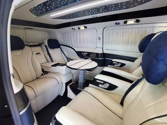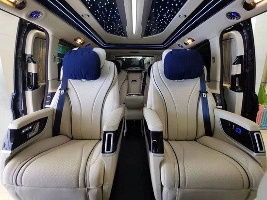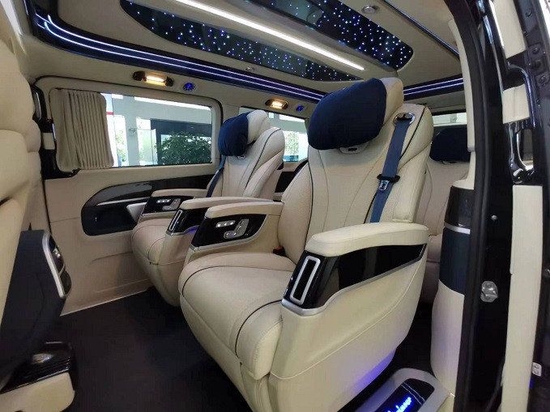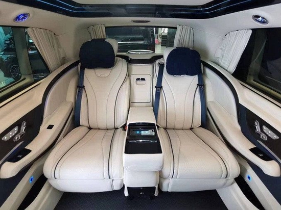 内饰皮料采用顶级Nappa真皮+超纤,乘坐舒适感更强;星空之夜内顶+环绕流水灯更显乘坐人身份,领导上车后氛围灯自动打开,座椅智能感应调至最佳舒适角度欢迎贵宾,下车离开,后舱座椅自动复位至初始状态。